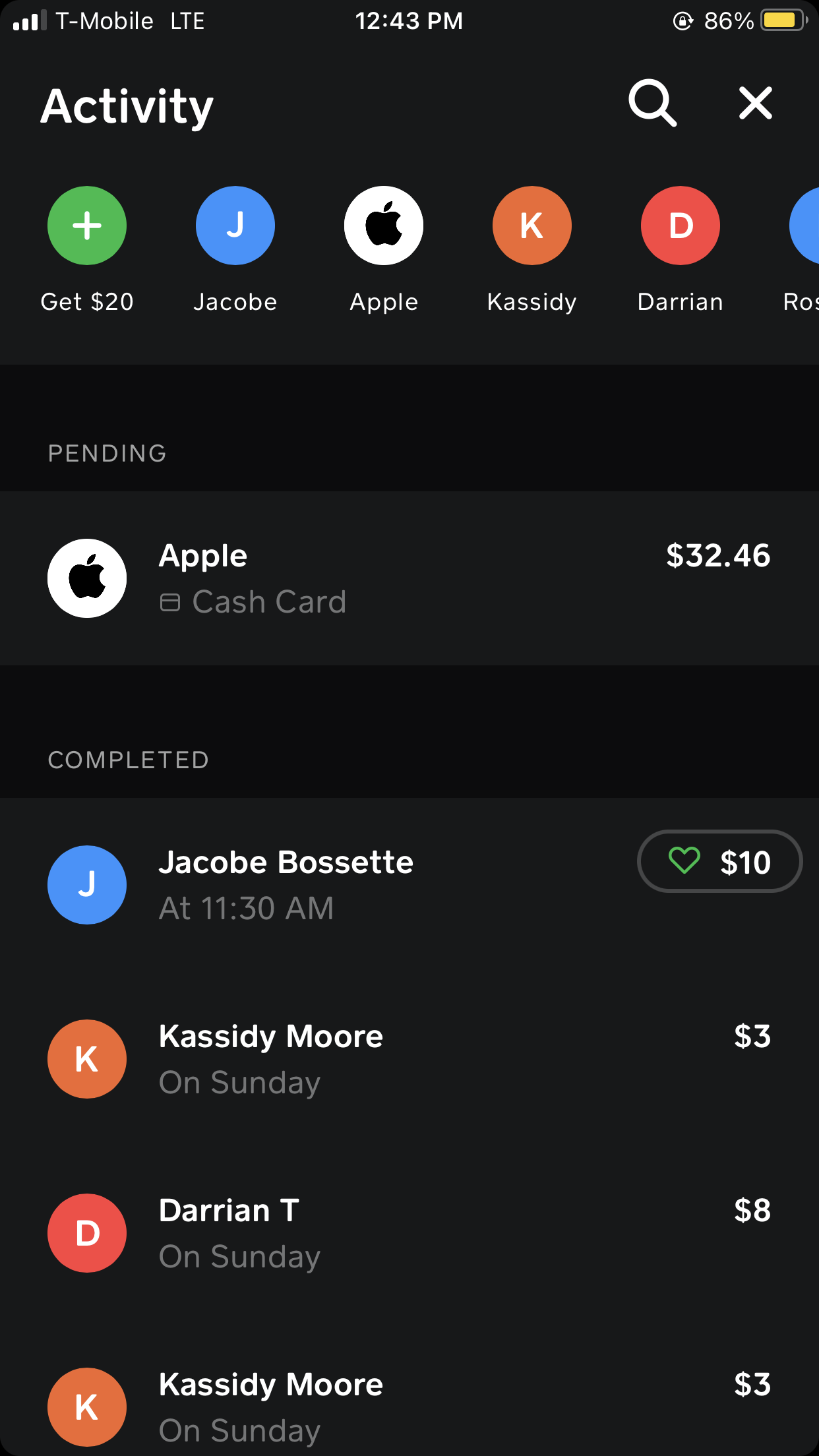 Press the action button to get your Cash App payment history.